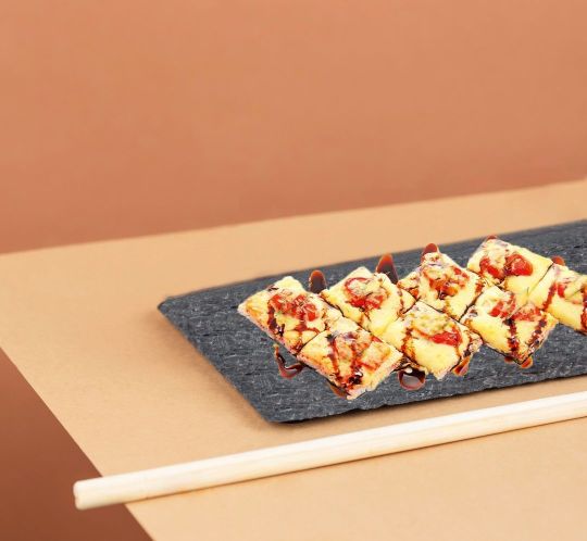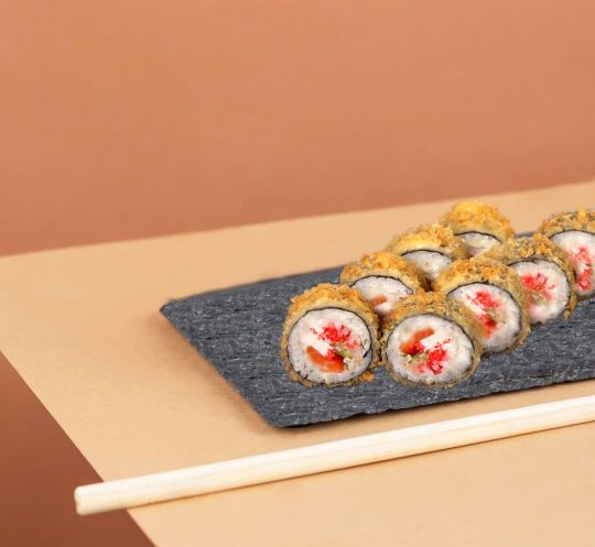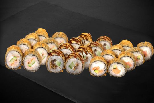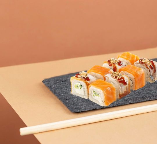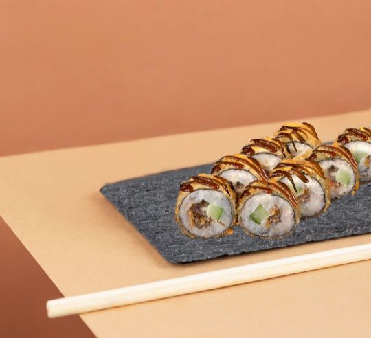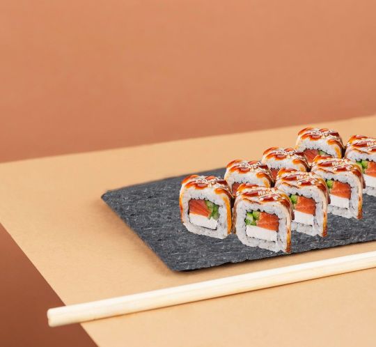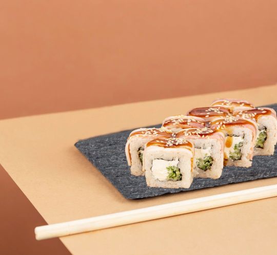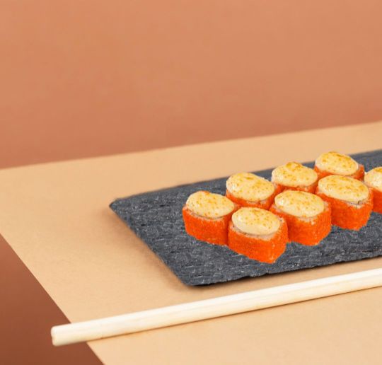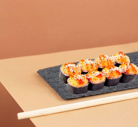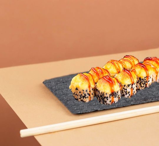 Ролл с беконом, Эби с кунжутом, Запеченный с угрем, Калифорния Запеченная с семгой, Сяке Хотто, Курица Хотто