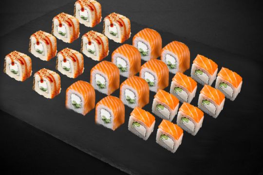 Филадельфия Лайт, Сяке Хосомаки, Калифорния с семгой, Сяке Хотто, Запеченный с семгой