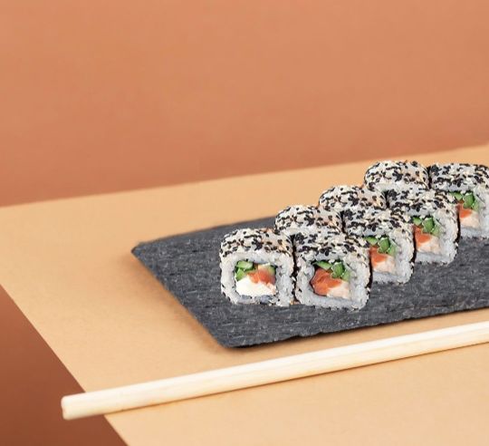 Рис, креветка, творожный сыр, огурец, кунжут, нори, соус на выбор: (Спайси (острый)/ Терияки)
