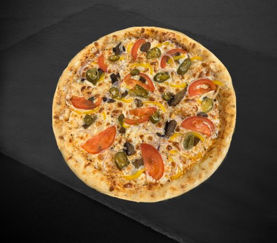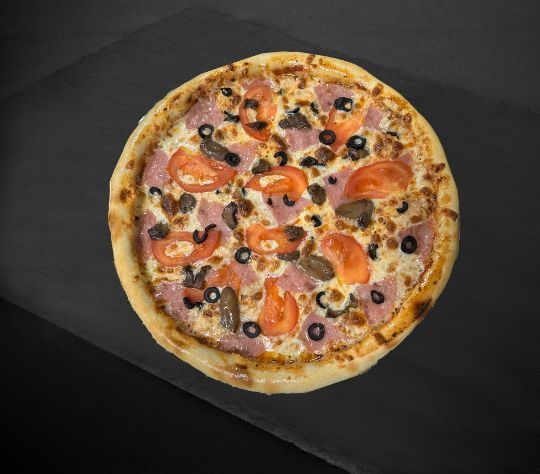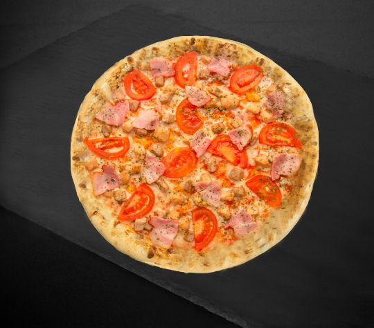 Сыр, ветчина, шампиньоны, помидоры, фирменный соус