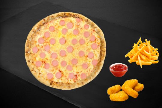 Сыр моцарелла, молочные сосиски, фирменный соус